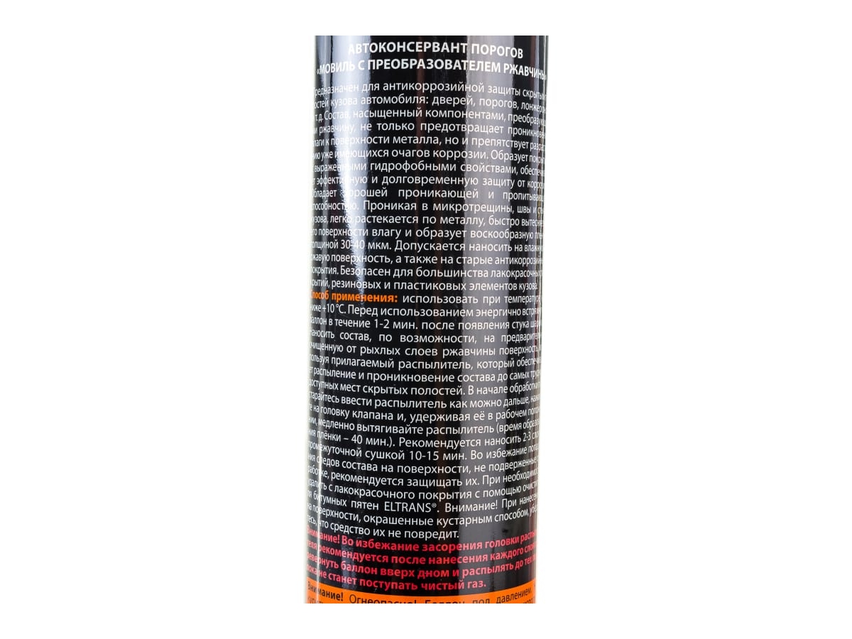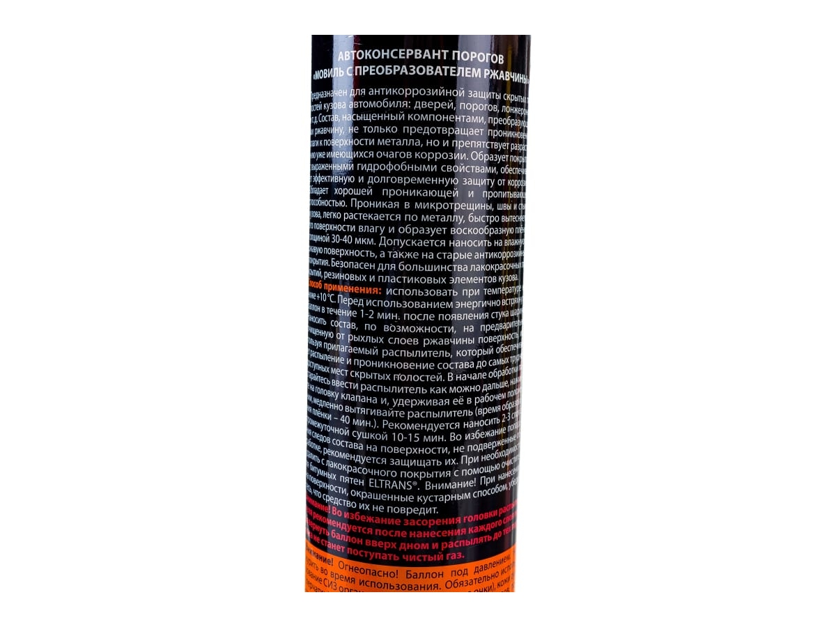 - Наносить состав, по возможности, на предварительно очищенную от рыхлых слоев ржавчины поверхность, используя прилагаемую трубочку, которая обеспечивает равномерное распыление в скрытых полостях (время образования плёнки – 40 мин).