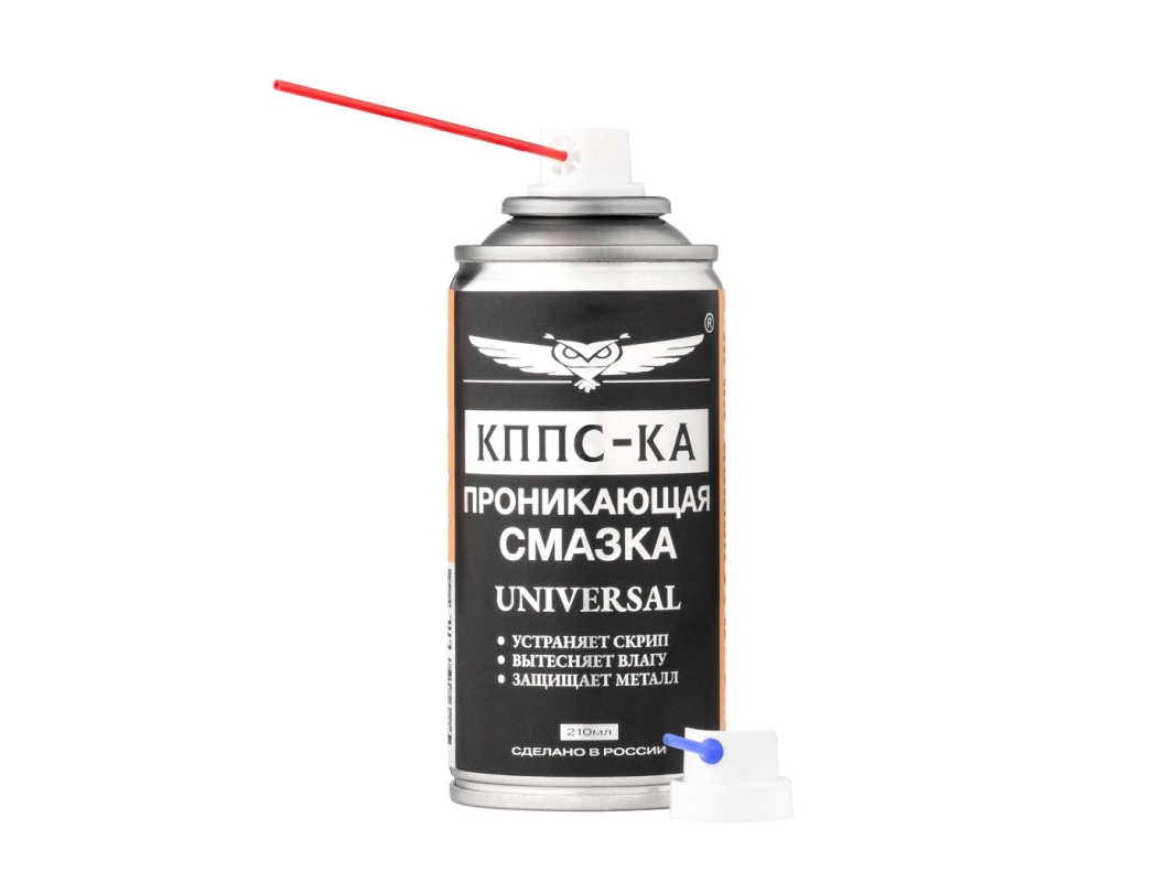 Проникающая смазка КППС-КА UNIVERSAL - многофункциональное средство для эффективного смазывания узлов подвижных механизмов, устранения скрипов и заеданий, удаления продуктов коррозии и грязи.Проникающая способность смазки позволяет разъединить заклинившие узлы и приржавевшие детали, обработать цепь велосипеда или мотоцикла, суппорта, направляющие и петли.