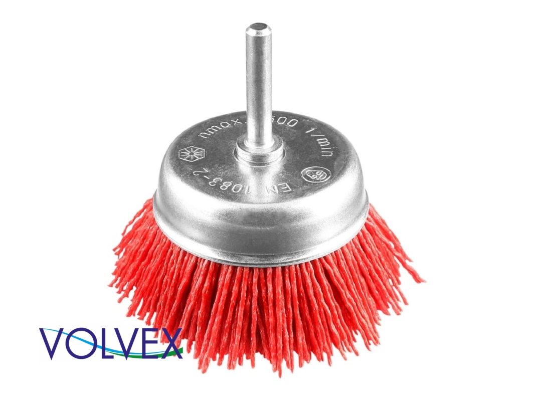 Щетка чашечная 100 мм, 1/4", нейлоновая для очистки и бережной полировки. Применение: металлы, дерево, пластмассы. Мелкозернистая нейлоновая проволока.