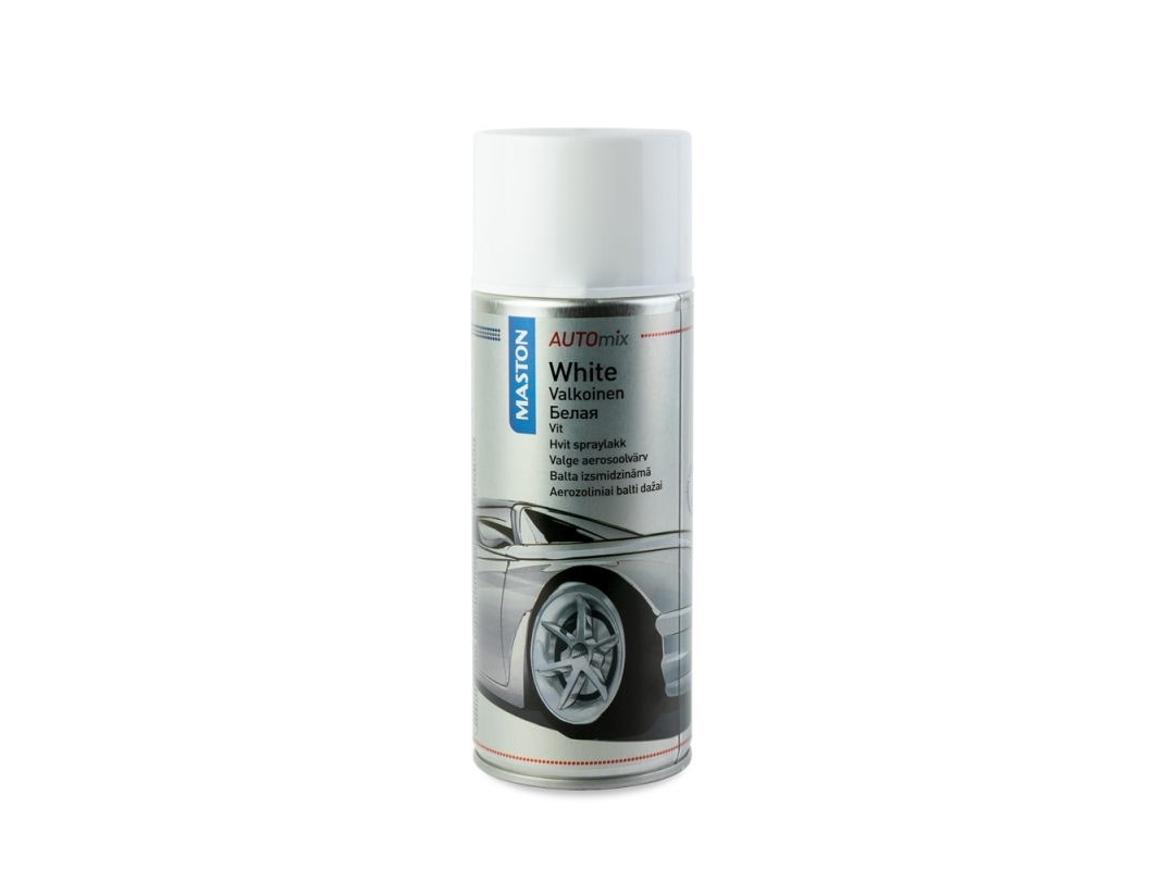 Maston AUTO ACRYL высококачественная акриловая авто краска в баллончике белая серебристая для металлических деталей, твердых пластмассовых деталей и колесных дисков. Отличная укрывистость, быстрое время сушки, гладкая поверхность и устойчивый блеск.