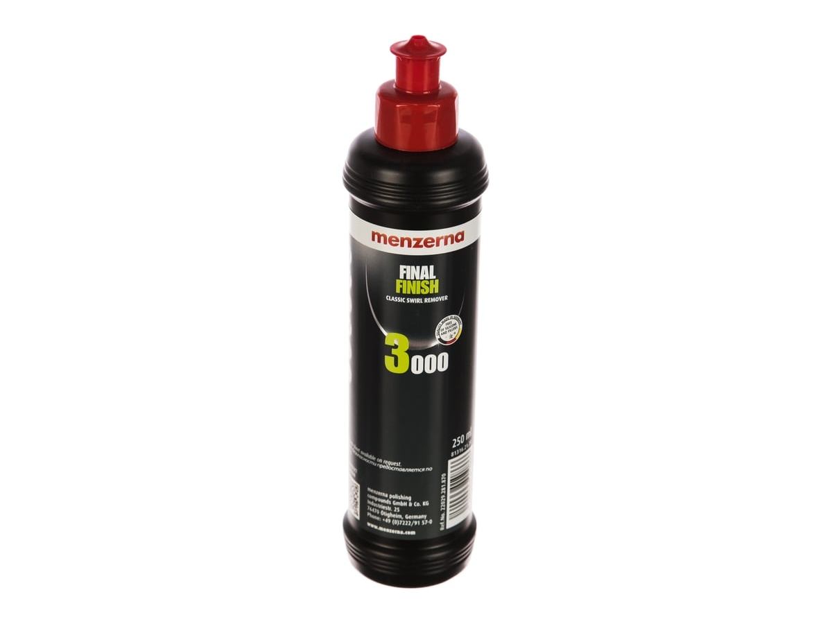 Final Finish 3000 Низкоабразивная антиголограммная полировальная паста. Рекомендуется для работы на финишном этапе полировки с мягкими поролоновыми полировальными дисками. Назначение: полировка удаление голограмм и достижение идеального финишного блеска свежеокрашенных и бывших в эксплуатации поверхностей. Не оставляет разводов, не содержит силиконы и заполнители, маскирующие риски. Применяется с инструментом, имеющим вращательный или вращательно-орбитальный тип движения подошвы, планетарный привод подошвы.