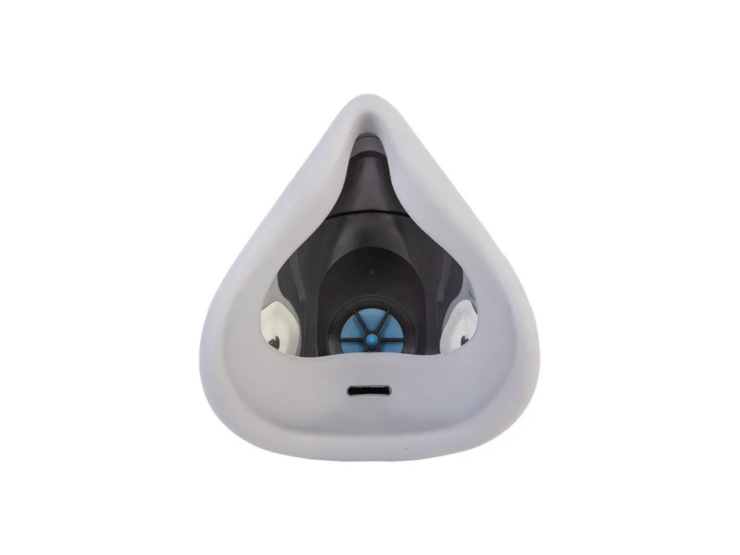 Полумаска перемещается по стропам оголовья, что позволяет сдвигать ее от лица без снятия в т. ч. других средств защиты, например, каски.