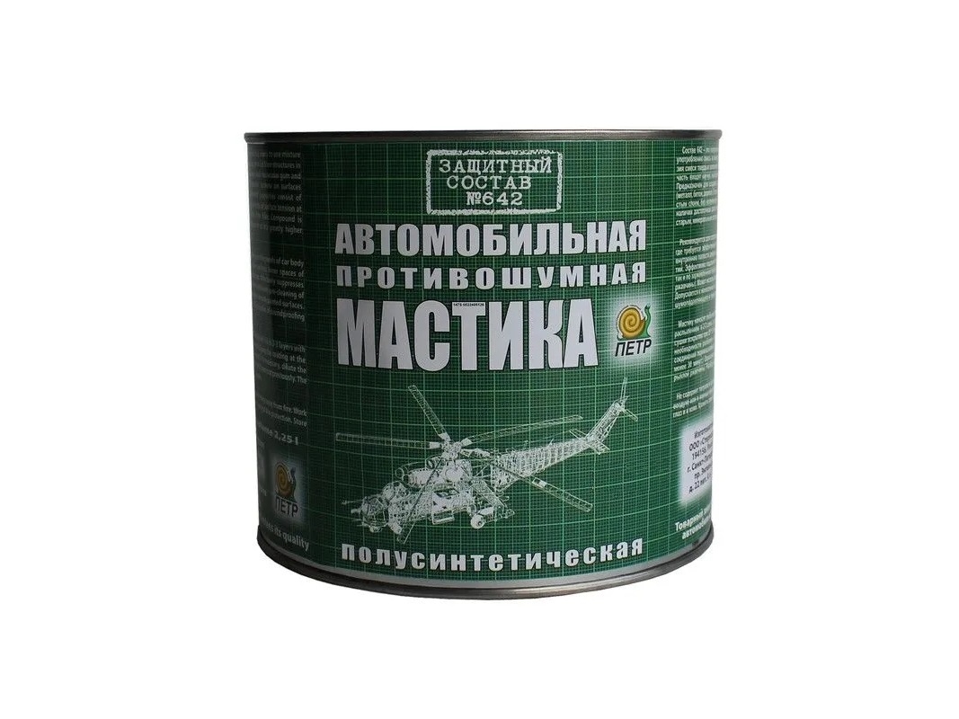 Состав 642 — это полусинтетическая противошумная мастика, представляющая собой готовую к употреблению смесь из минеральной и синтетической частей. В минеральную часть входит суспензия смеси твердых волокнистых структур в растворе полимеризованного битума. В синтетическую часть входит каучук, высокомолекулярная смола и соответствующий им полярный растворитель. В основе противошумных свойств лежит возможность нанесения состава толстым слоем, без возникновения узлов поверхностного натяжения в момент высыхания, а так же на наличии достаточной доли твердого волокнистого наполнителя. Разработана в 2013 году на смену старым, минеральным составам. Обладает, по отношению к ним, значительно большей эластичностью.