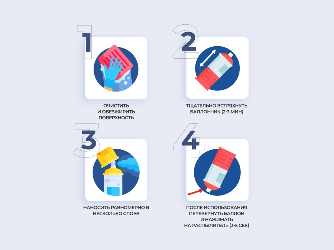 Спрей образует прочное и износостойкое покрытие, которое легко наносится и может использоваться для окрашивания труднодоступных участков, мелких и фигурных предметов и деталей.