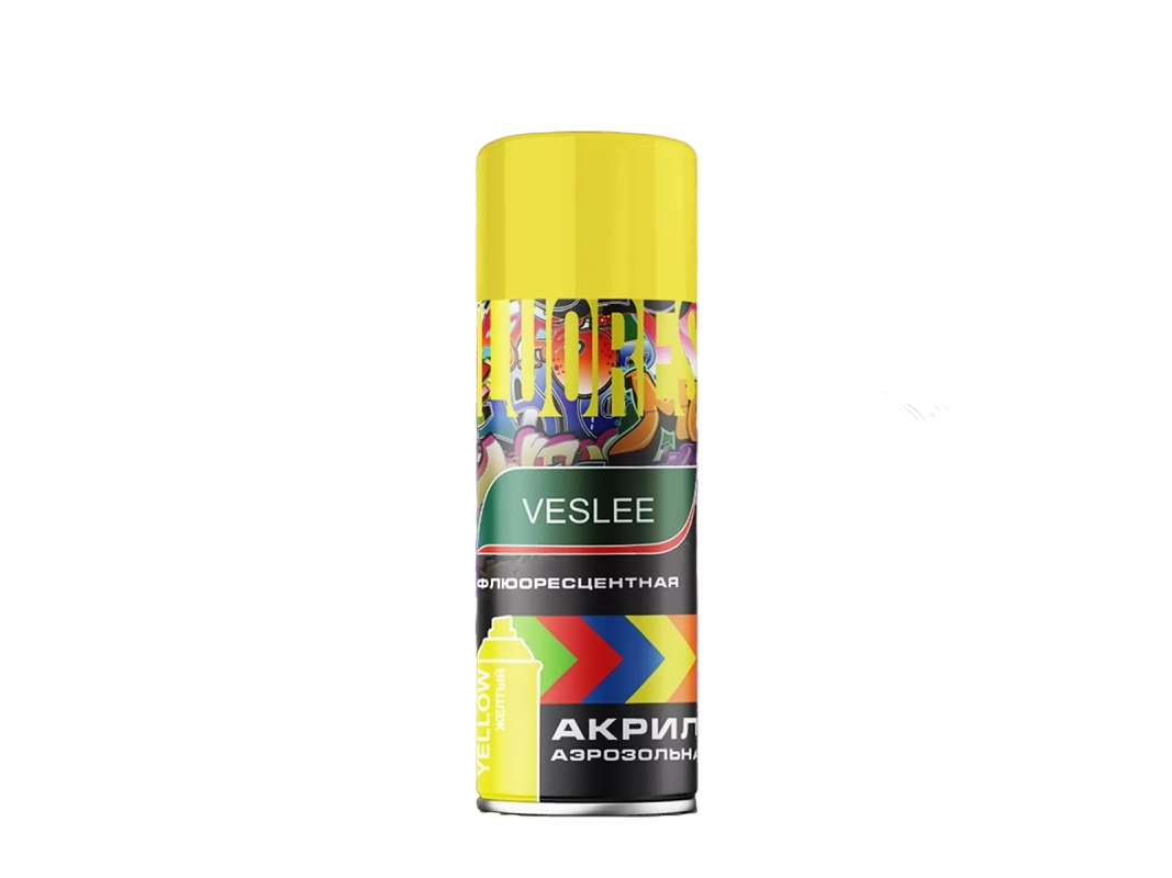 Быстросохнущая краска-аэрозоль Veslee флуоресцентная — это акриловая краска для внутреннего и наружного применения. Краска спрей подходит для покрытия металла, дерева, бумаги и стекла, пластика.